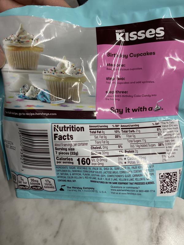 Perfect for party candy dishes. HERSHEYS Kisses Birthday Cake Flavored with Sprinkles Candy Bag 10 Oz Pack of 2. Per Bag - 28 oz Total - Gluten Free Kisses - Individually Wrapped Christmas Kisses.